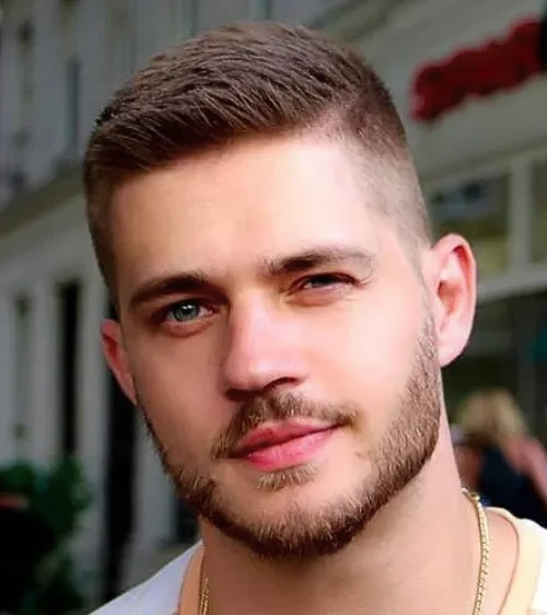 The buzz cut looks especially good on men with square or oval faces, as it brings out the jawline and makes the face look strong and balanced.